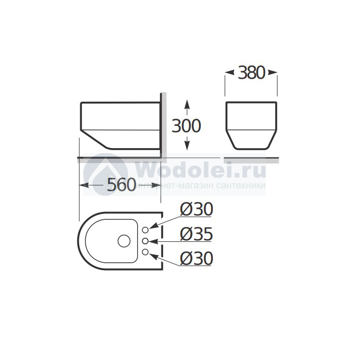Биде подвесное Armani Roca Baia 56x38x30см 7.3570.C.600.0 с 3 отв. под смеситель, белое