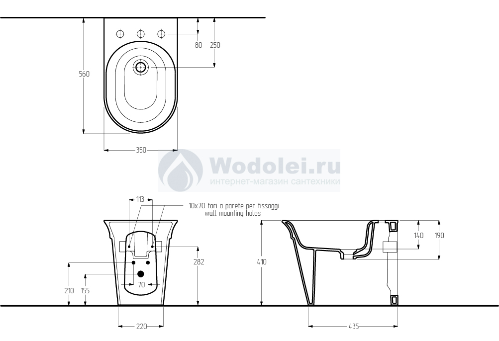 - закрепление биде к стене (для навесной установки) или к полу (для напольной установки)