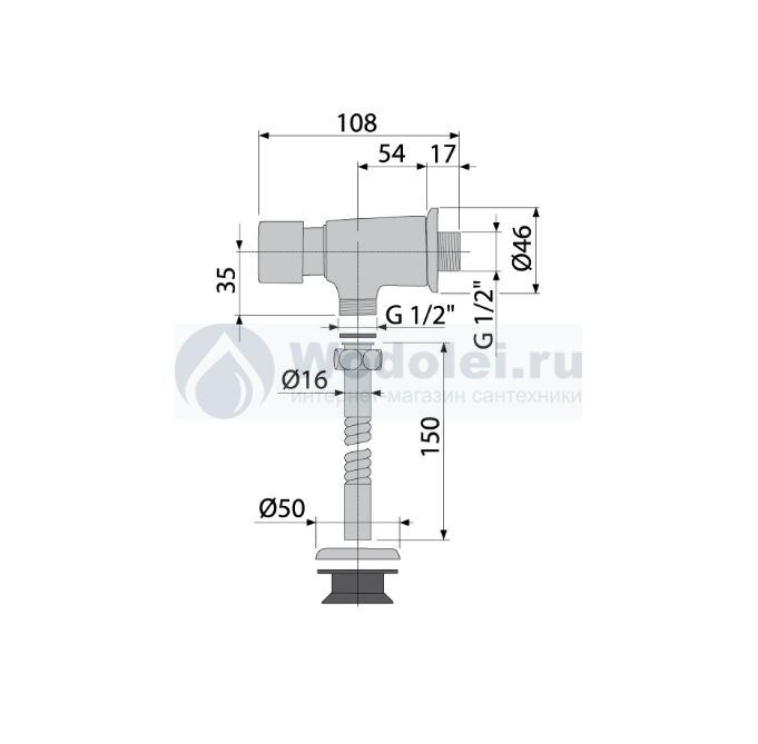 Вентиль сливной кнопочный для писсуара AlcaPlast ATS001