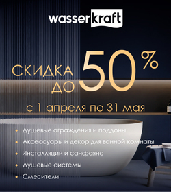 Wasserkraft - выгодно! Большие скидки на всю сантехнику.Срок проведения акции: 01.04—31.05