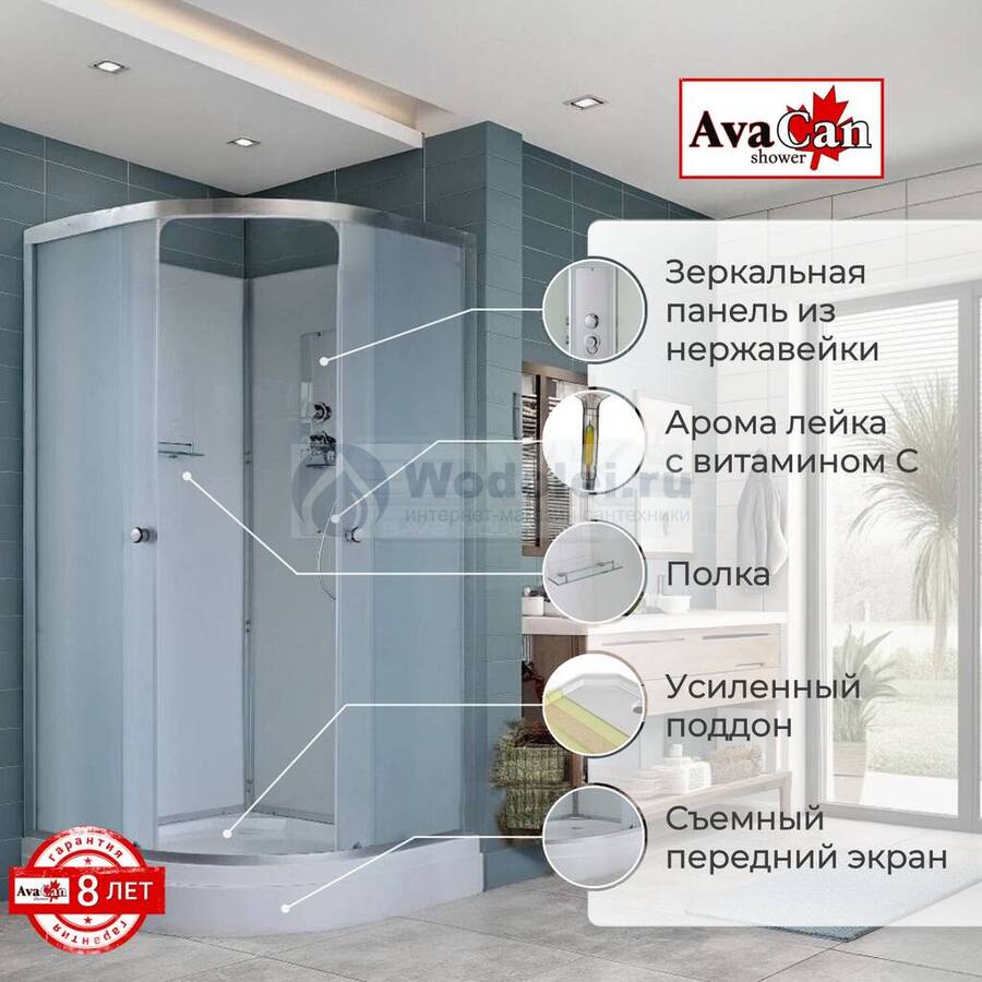 Купить душевую кабину 100x100 AvaCan 100x100 D2010N без крыши, стекло матовое, профиль хром низкий поддон в Москве в магазине Wodolei можно с доставкой и установкой. У нас гарантированно низкая цена: душевая кабина AvaCan 100x100 D2010N без крыши, стекло матовое, профиль хром четверть круга 100x100 см стоит 52700 руб. Если нашли дешевле – просите скидку!