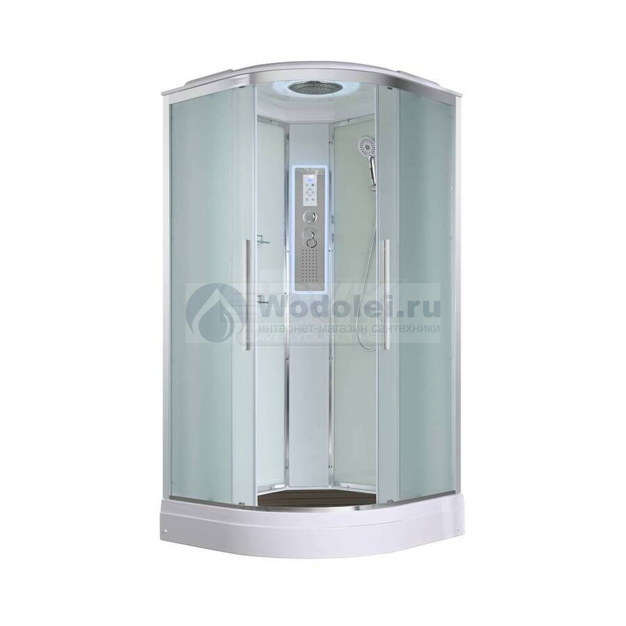 Купить душевую кабину 100x100 AvaCan 100x100 EM2010LED с гидромассажем и подсветкой, стекло матовое, профиль хром низкий поддон в Москве в магазине Водолей можно с доставкой и установкой. У нас установлена самая выгодная цена: душевая кабина AvaCan 100x100 EM2010LED с гидромассажем и подсветкой, стекло матовое, профиль хром четверть круга 100x100 см за 79350 руб. Если нашли дешевле – просите скидку!