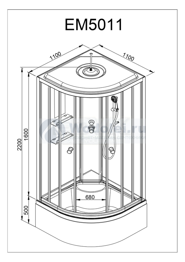 Купить душевую кабину 110x110 AvaCan 110x110 D511 без крыши, стекло матовое, профиль хром высокий поддон в Москве в магазине Водолей можно с доставкой и установкой. У нас установлена самая доступная цена: душевая кабина AvaCan 110x110 D511 без крыши, стекло матовое, профиль хром четверть круга 110x110 см за 47850 руб. Если нашли дешевле – дадим скидку!