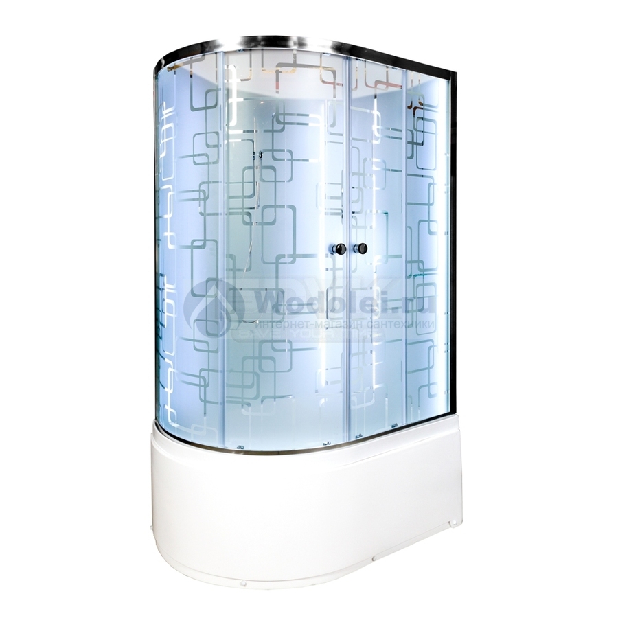 Модель 120x90 EM5012RNLED+GM без крыши с гидромассажем, подсветкой, узорчатое, хром, правая - правая, на фото может быть изображена левая модель.