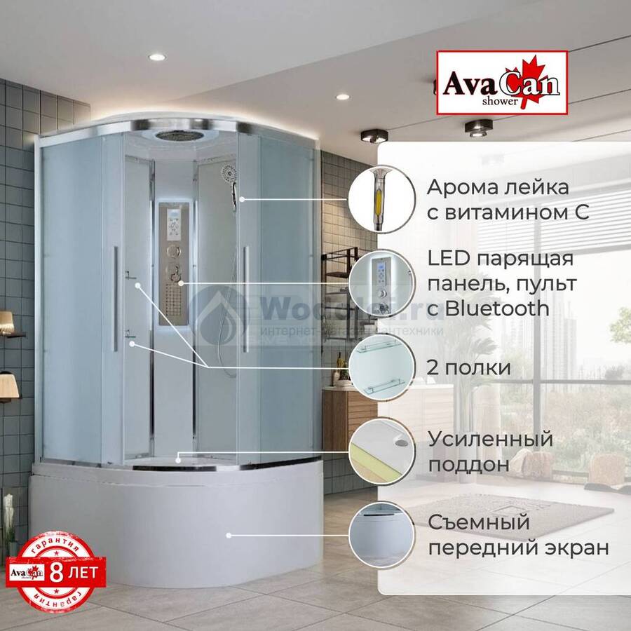Душевая кабина AvaCan 80x80 EM5080LED с подсветкой, гидромассажем, стекло матовое, профиль хром