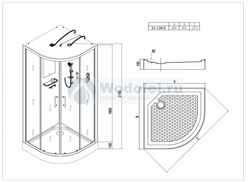 Купить душевую кабину 90х90 Esbano Elegancia 90х90 ES-L90CR с крышей, с LED освещением, стекло матовое, профиль белый низкий поддон в Москве в магазине Водолей можно с доставкой и установкой. У нас гарантированно низкая цена: душевая кабина Esbano Elegancia 90х90 ES-L90CR с крышей, с LED освещением, стекло матовое, профиль белый четверть круга 90х90 см за 68404 руб. Если нашли дешевле – просите скидку!