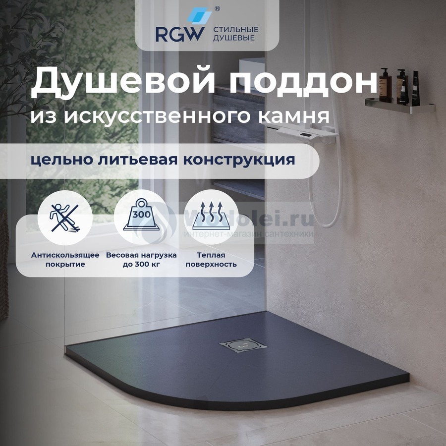 Купить низкий душевой поддон (литьевой мрамор) 90x90 см RGW Stone Tray ST/R-0099G 90x90 графит Германия в Москве в интернет-магазине Водолей удобно с доставкой и установкой. У нас установлена самая привлекательная цена: низкий душевой поддон из искусственного камня RGW Stone Tray ST/R-0099G 90x90 графит 90x90 см стоит 22342 руб. Если нашли дешевле – просите скидку!