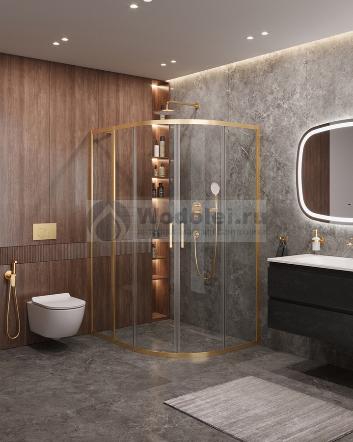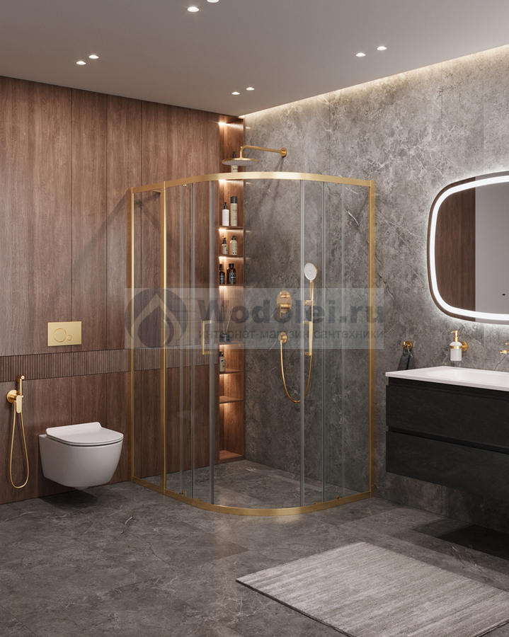 Отзывы о Cezares MOLVENO 120x100 MOLVENO-RH-2-120/100-C-BORO-IV стекло прозрачное, профиль брашированное золото