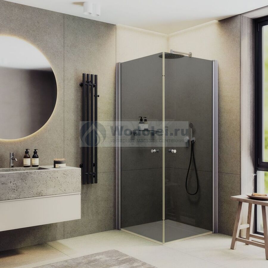 Душевой уголок MaybahGlass 90x90 MGY-1300-5 стекло графит, профиль хром матовый, без поддона