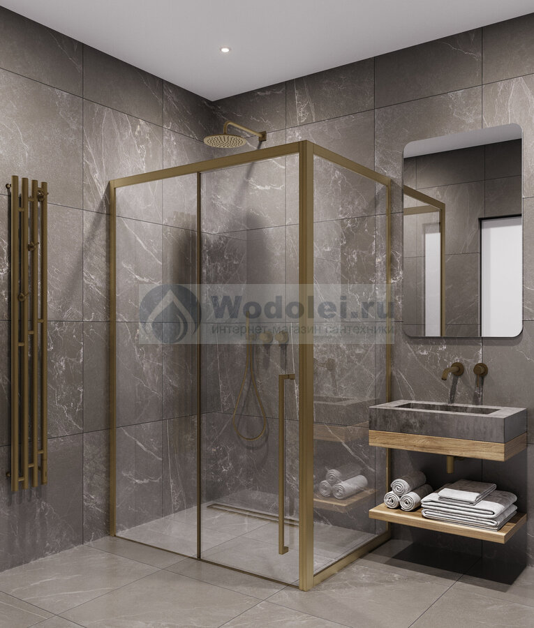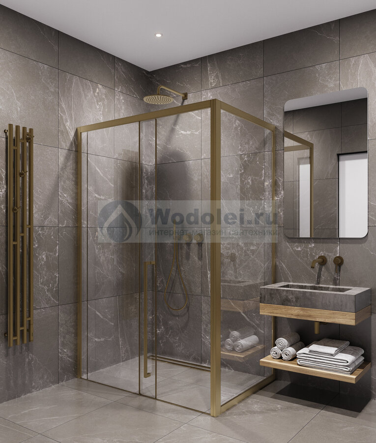 Отзывы о Timo 120х90 правый, стекло прозрачное, профиль матовое золото