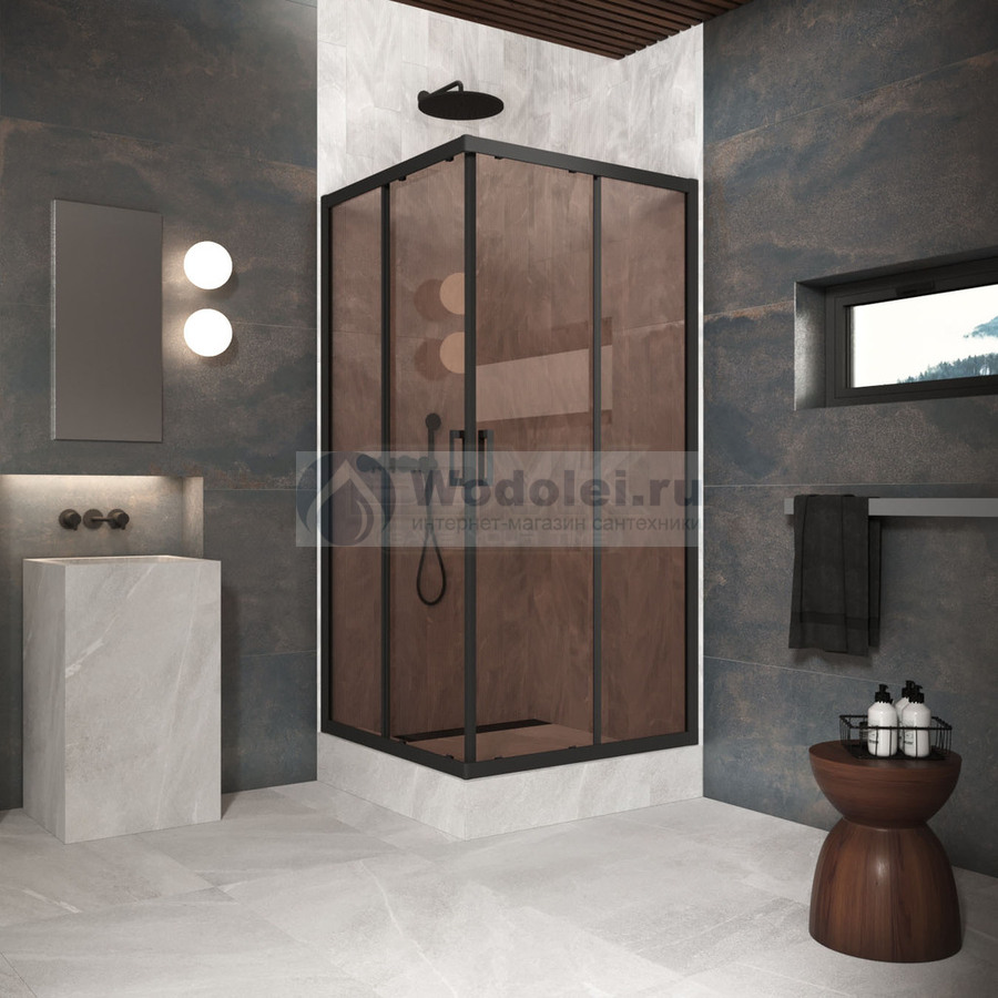 Душевой уголок Vegas-Glass ZA Protec 90x90 ZA Protec h1900 90 02М 05 профиль черный матовый, стекло бронза