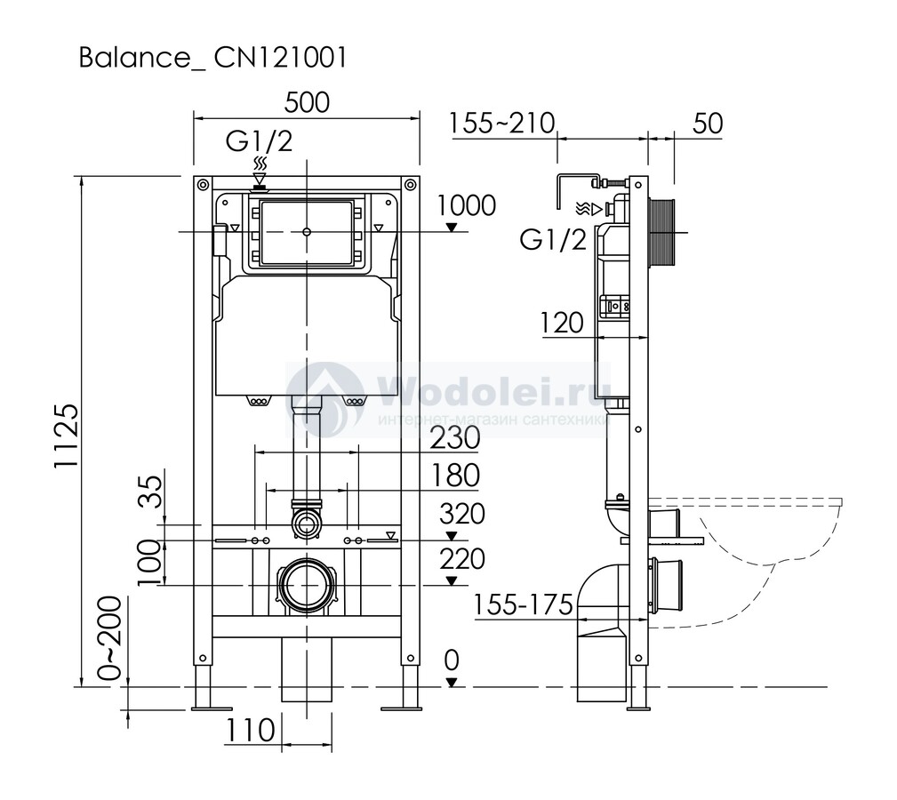 Купить сантехническую инсталляцию для подвесного унитаза Ceramica Nova Balance CN121002MB с черной матовой кнопкой Италия ШхВ 50x112.5 см в Москве в магазине Водолей удобно с доставкой и установкой. У нас установлена самая привлекательная цена: инсталляция для унитаза Ceramica Nova Balance CN121002MB с черной матовой кнопкой для подвесного унитаза за 18990 руб. Если нашли дешевле – просите скидку!