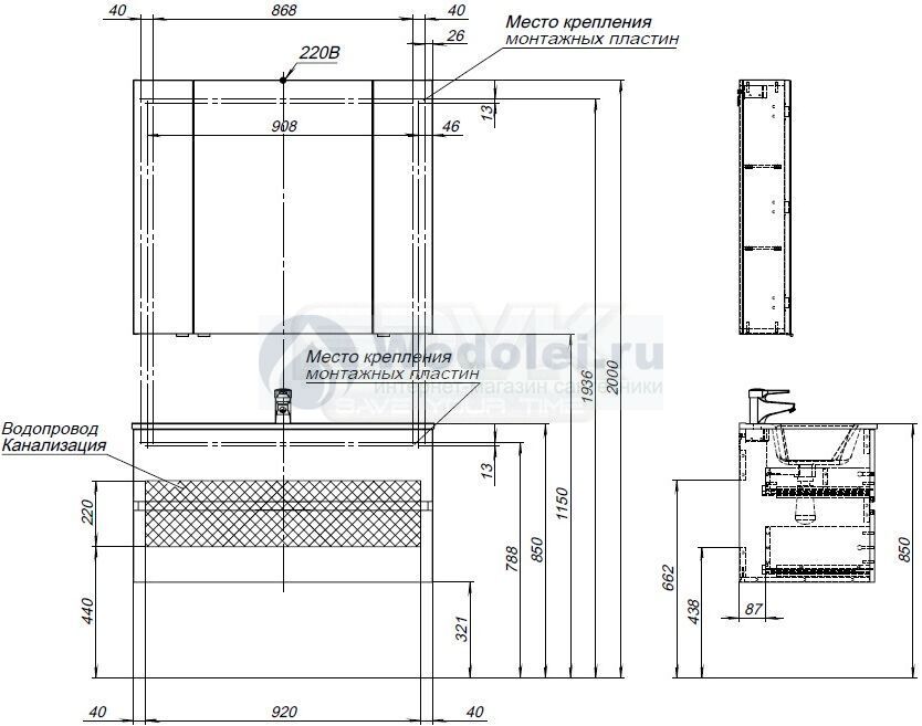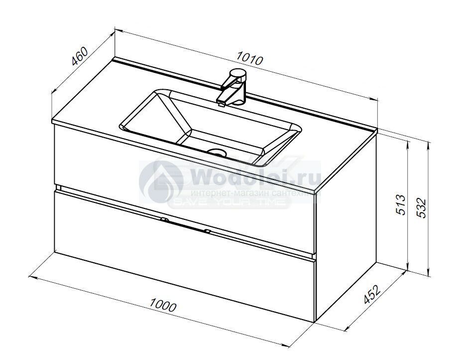 - установка на раковину смесителя и донного клапана необходимая настройка открывания всех дверей и ящиков комплекта