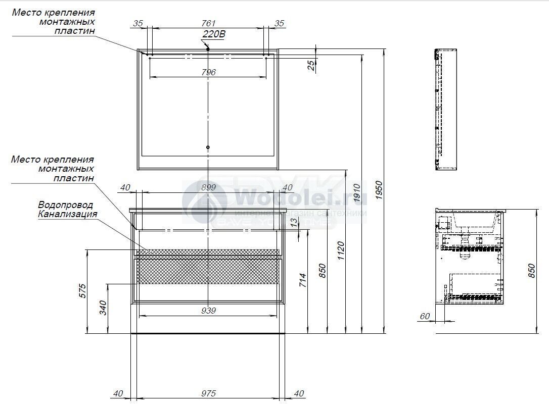 - установка на раковину смесителя и донного клапана необходимая настройка открывания всех дверей и ящиков комплекта