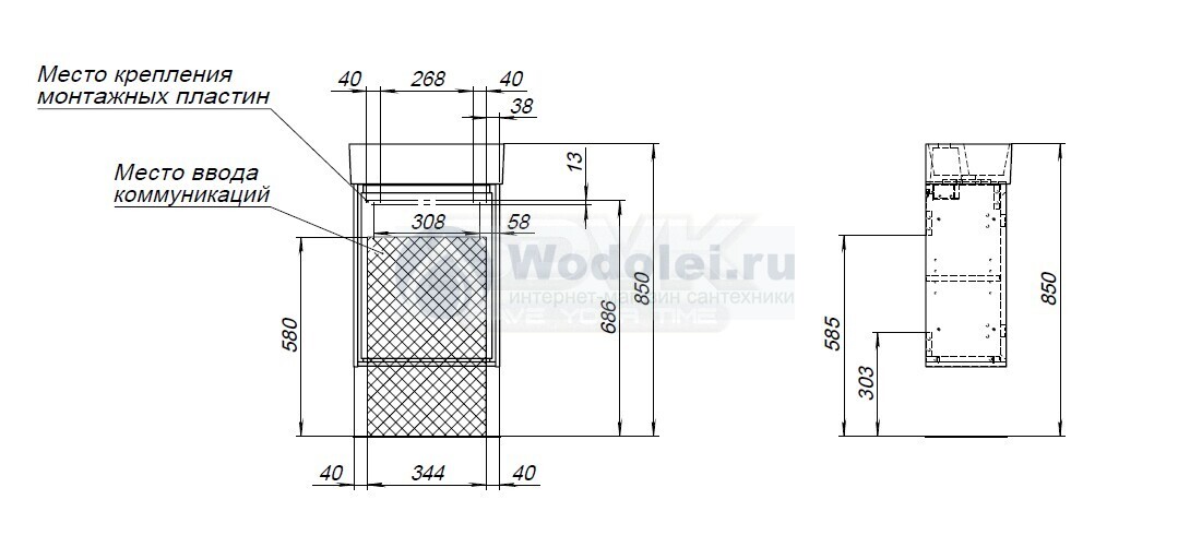 - подключение комплекта мебели к выводам воды, электрики, канализации