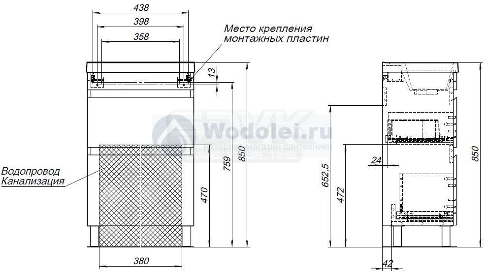 - подключение комплекта мебели к выводам воды, электрики, канализации