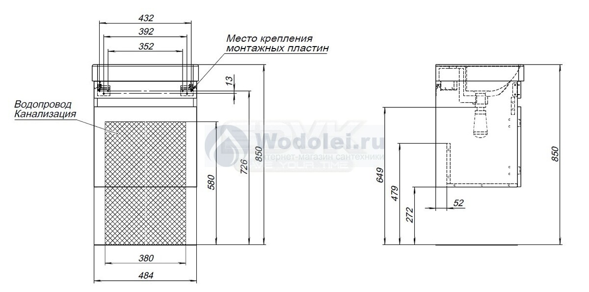 - подключение комплекта мебели к выводам воды, электрики, канализации