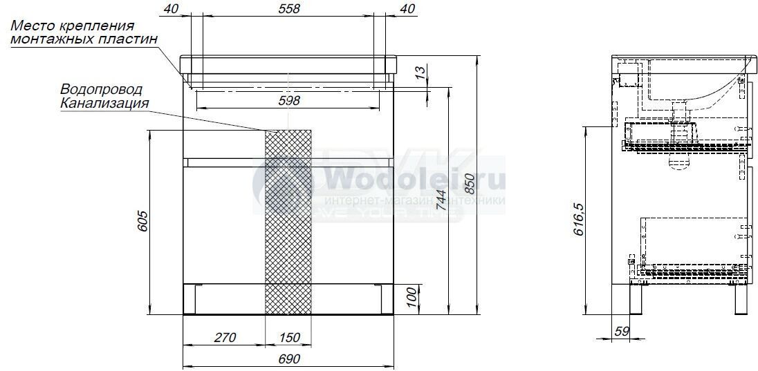 - установка на раковину смесителя и донного клапана необходимая настройка открывания всех дверей и ящиков комплекта