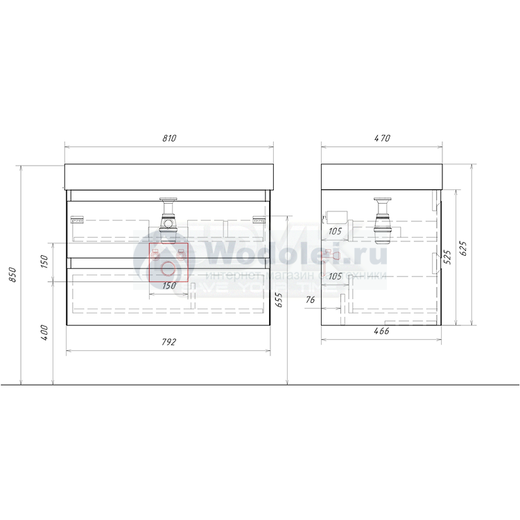 - установка на раковину смесителя и донного клапана необходимая настройка открывания всех дверей и ящиков комплекта