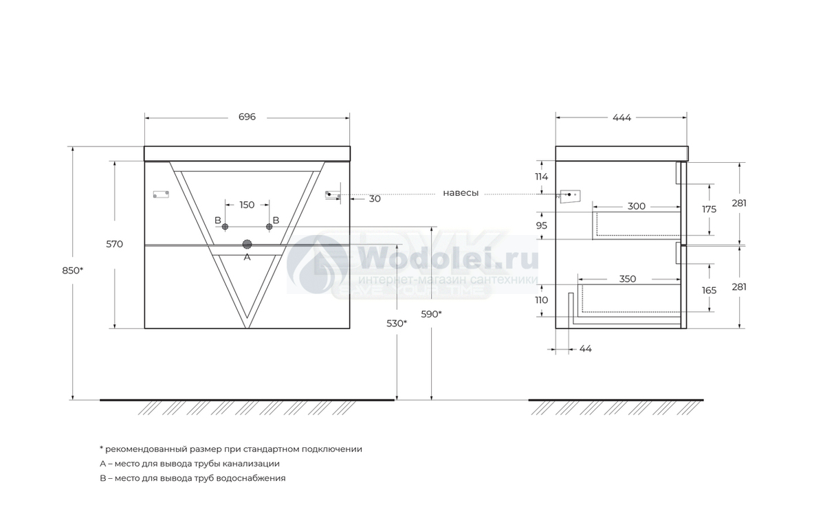 - установка на раковину смесителя и донного клапана необходимая настройка открывания всех дверей и ящиков комплекта