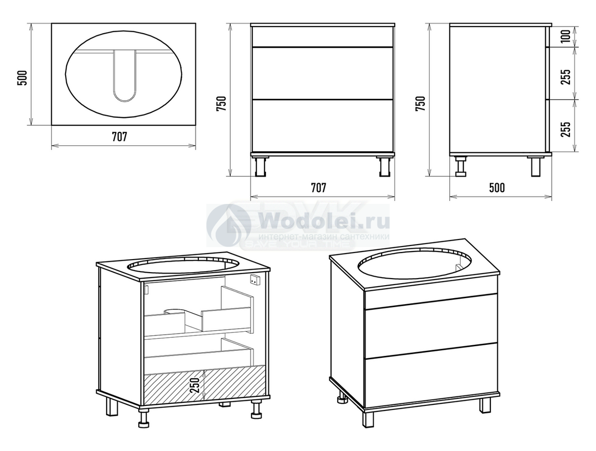 - установка на раковину смесителя и донного клапана необходимая настройка открывания всех дверей и ящиков комплекта