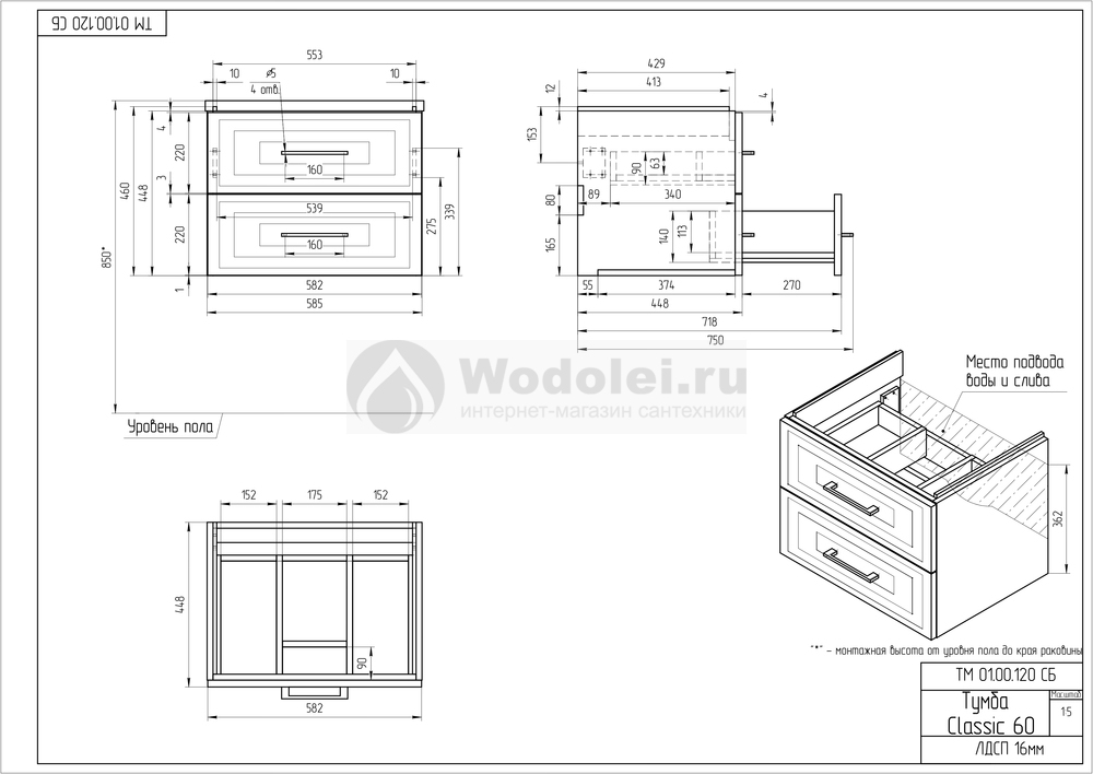 - установка на раковину смесителя и донного клапана необходимая настройка открывания всех дверей и ящиков комплекта