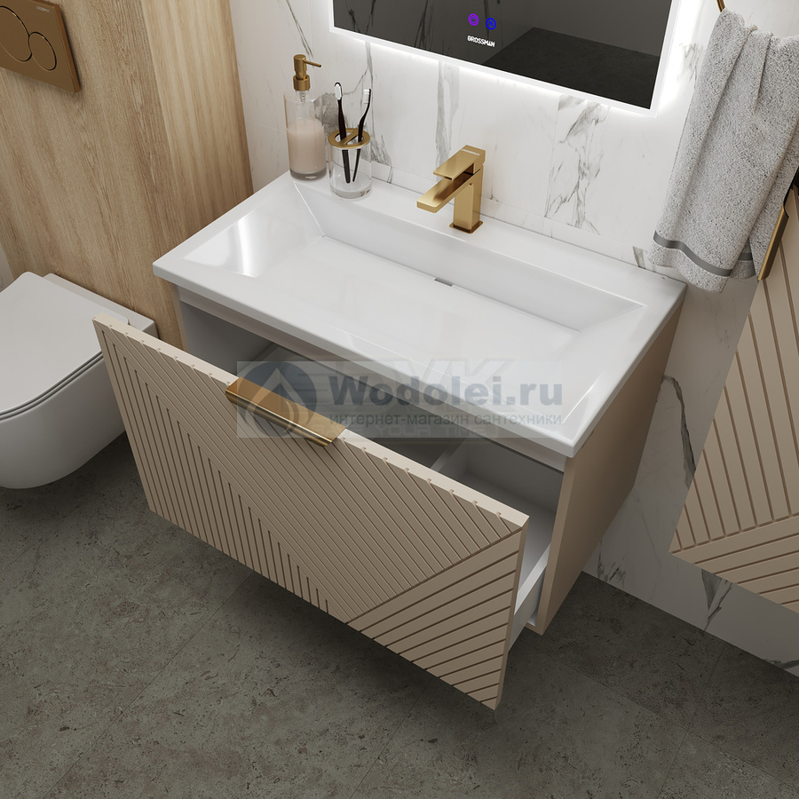 Мебель для ванной комнаты Grossman Блисс 70 см подвесная, бежевая матовая