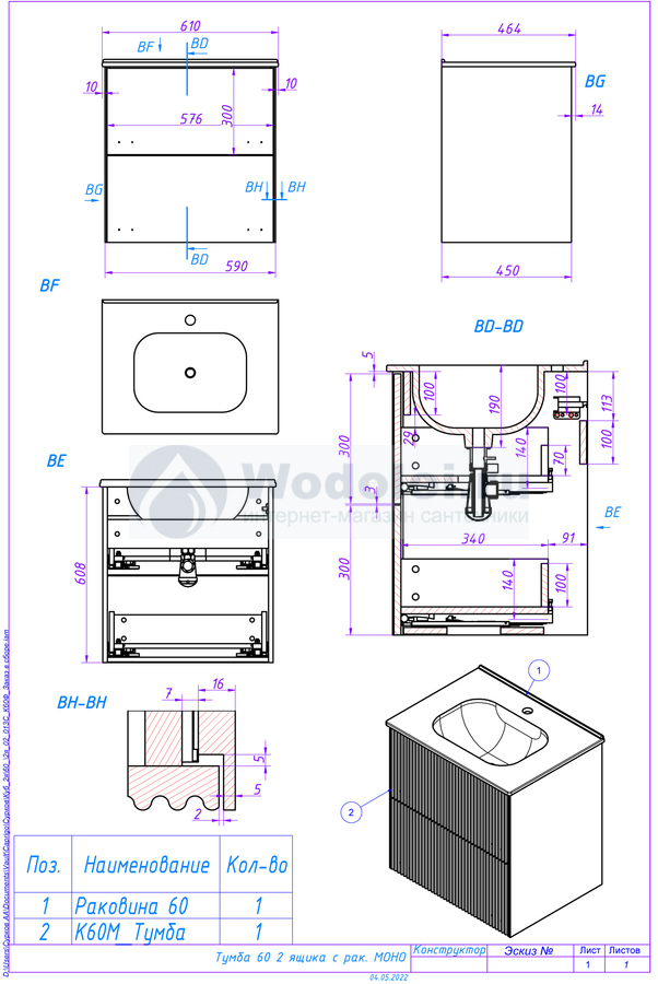 Мебель для ванной комнаты LaFenice Terra TWIN 60 см, подвесная, 2 ящика, Cappuccino