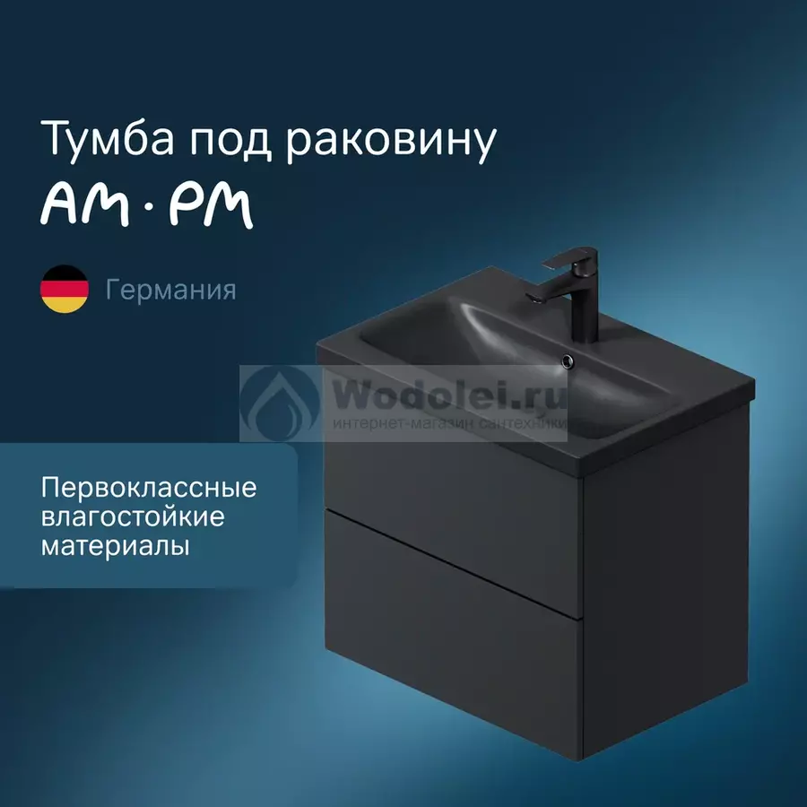 Тумба под раковину подвесная Am.Pm Gem 60 см M90FHX06022BM черная Германия ШхВ: 60х58 - купить в Москве в магазине Водолей удобно с доставкой и установкой. У нас установлена самая доступная цена: тумба под раковину Am.Pm Gem 60 см M90FHX06022BM черная ВЛДСП за 26790 руб. Если нашли дешевле – предоставим скидку!