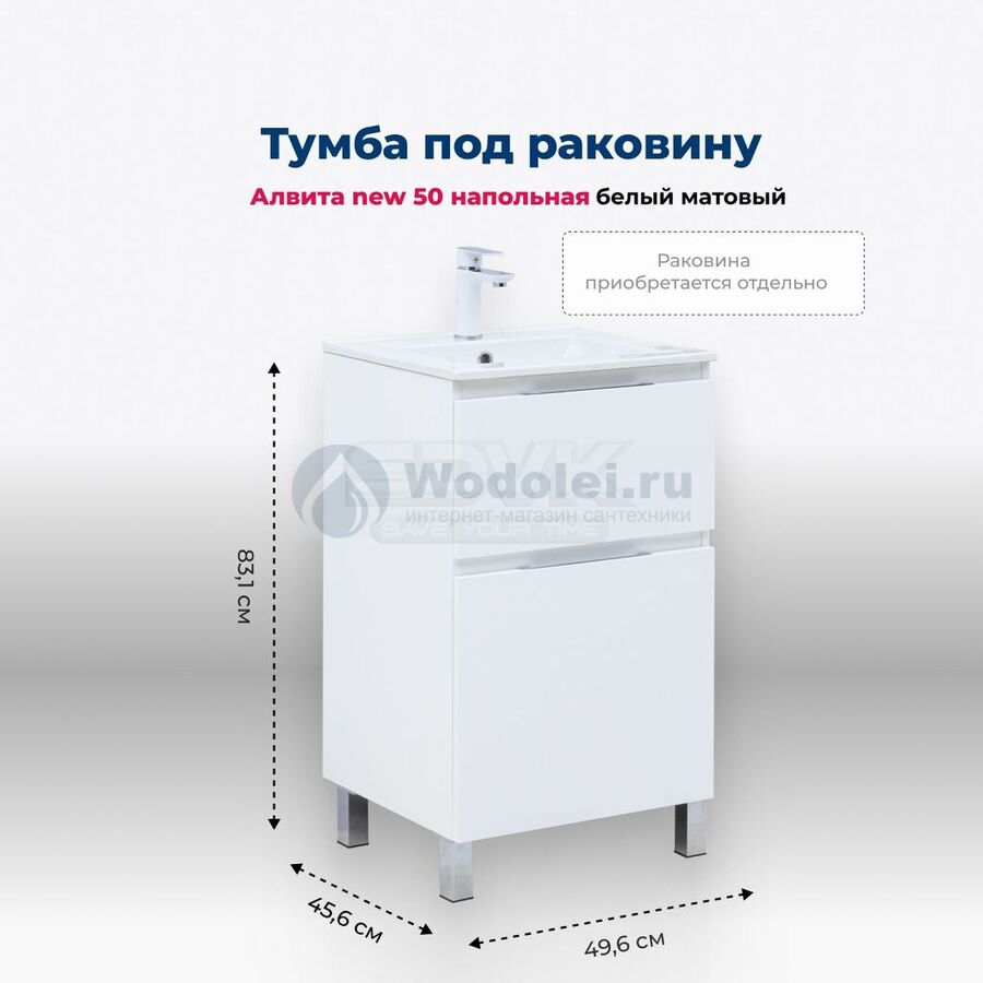 Тумба под раковину Aquanet Алвита New 50 см 00344131 напольная, белая матовая Россия ШхВ: 49.6х83.1 - купить в Москве в интернет-магазине Водолей удобно с доставкой и установкой. У нас установлена самая привлекательная цена: тумба под раковину Aquanet Алвита New 50 см 00344131 напольная, белая матовая ВЛДСП за 22832 руб. Если нашли дешевле – предоставим скидку!