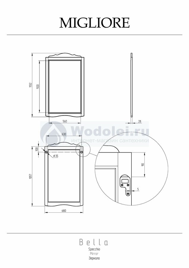 Зеркало Migliore Bella 65 см 25946 декапе саббиа Италия ШхВ: 65х113.2 - купить в Москве в магазине Водолей удобно с доставкой и установкой. У нас установлена самая привлекательная цена: зеркало Migliore Bella 65 см 25946 декапе саббиа МДФ за 37800 руб. Если нашли дешевле – дадим скидку!