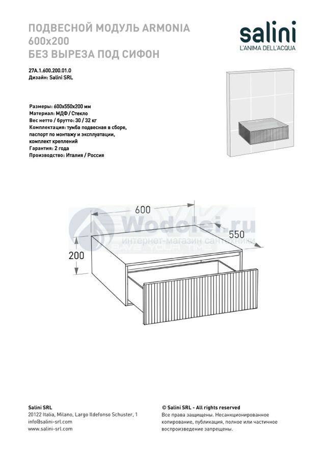 Тумба подвесная Salini Armonia 60 см 27A.1.600.200.11.0 сталь ШхВ: 60х20 - купить в Москве в интернет-магазине Wodolei удобно с доставкой и установкой. У нас гарантированно низкая цена: тумба Salini Armonia 60 см 27A.1.600.200.11.0 сталь МДФ, стекло стоит 113400 руб. Если нашли дешевле – дадим скидку!
