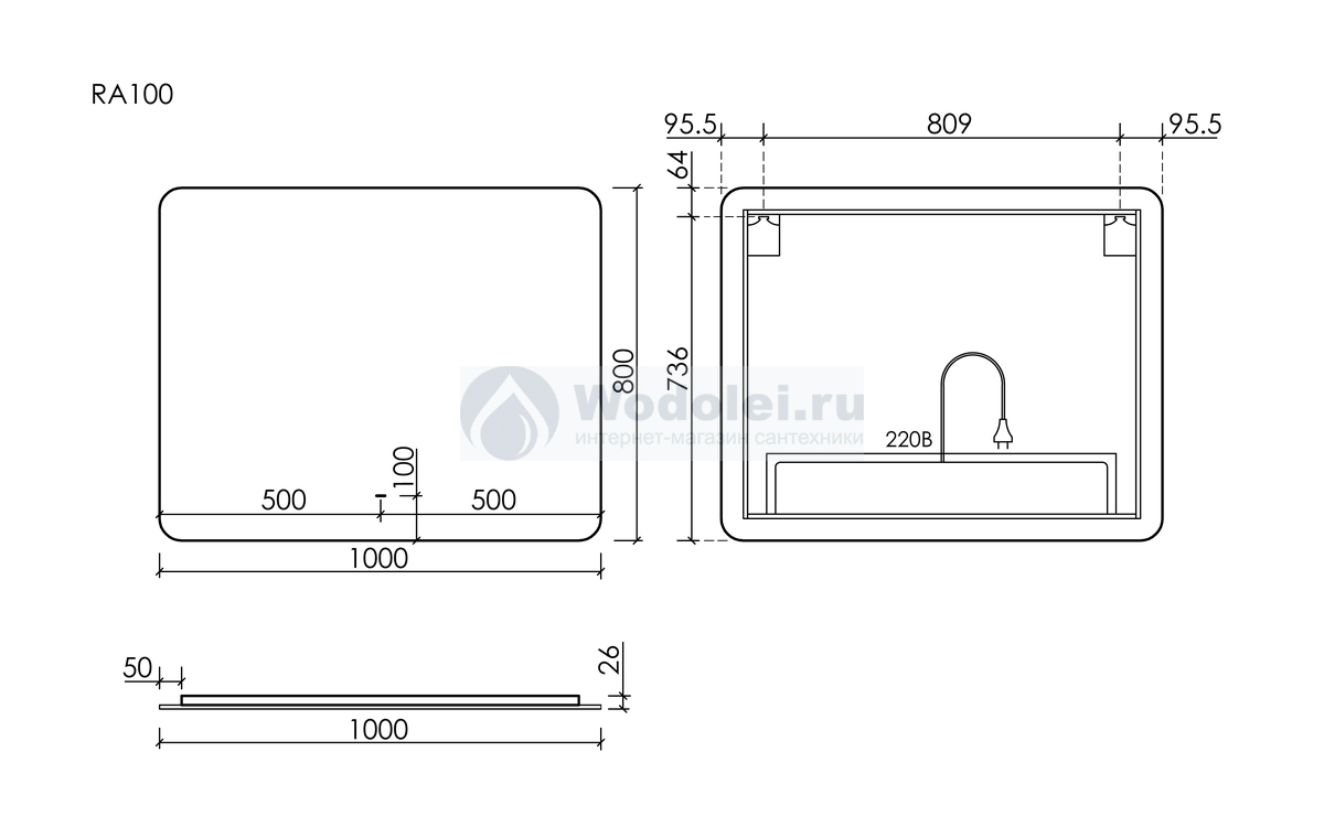 Зеркало с подсветкой Sancos Ray 100 см RA1000