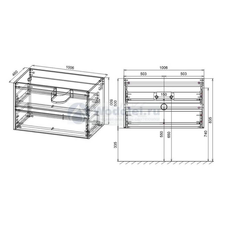 - установка на раковину смесителя и донного клапана необходимая настройка открывания всех дверей и ящиков комплекта