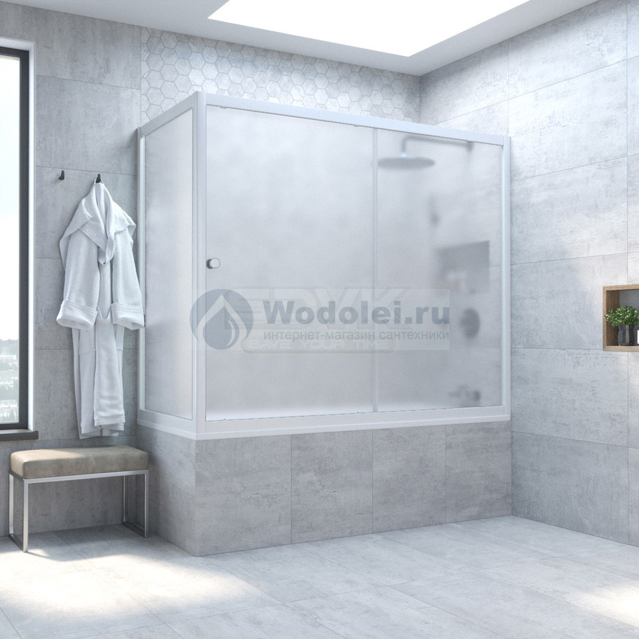 Шторка на ванну Vegas-Glass 150x75 ZV+ZVF NOVO 150*75 01 10 профиль белый, стекло сатин
