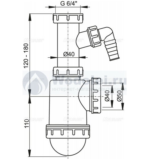 Сифон для раковины AlcaPlast A443-DN50/40 с накидной гайкой 6/4 Чехия - купить в Москве в интернет-магазине Wodolei удобно с доставкой и установкой. У нас гарантированно выгодная цена: сифон для раковины AlcaPlast A443-DN50/40 с накидной гайкой 6/4 стоит 605 руб. Если нашли дешевле – дадим скидку!
