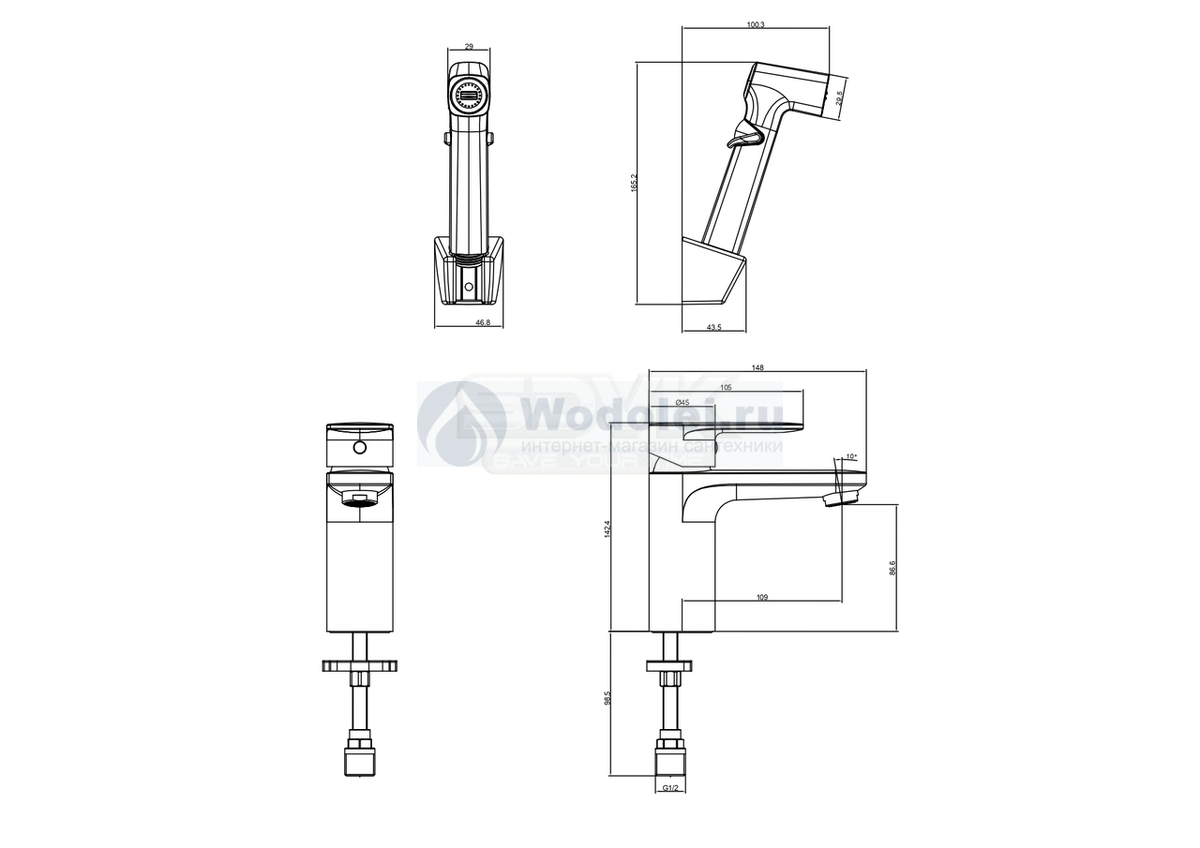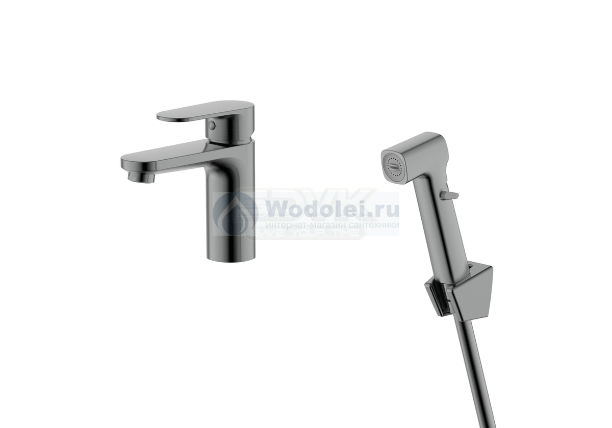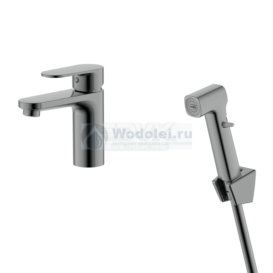 Смеситель для раковины с гигиеническим душем Акватек Ника AQ1812BGM с гигиеническим душем, оружейная сталь