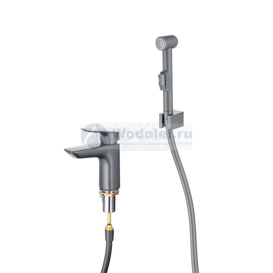 Смеситель для раковины Акватек Вега AQ1012BGM с гигиеническим душем, оружейная сталь