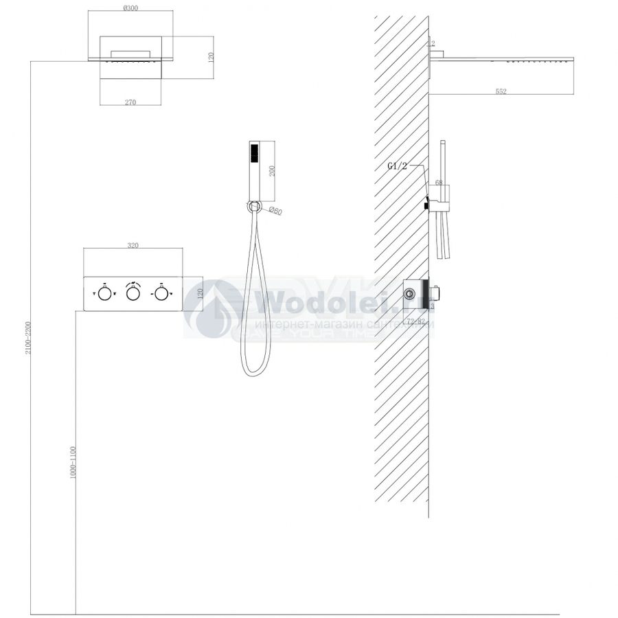 Габариты верхнего душа |