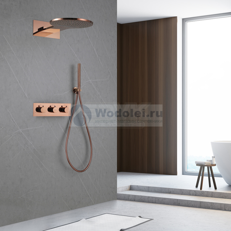 Встраиваемая душевая система Abber Wasser Kreis AF8151RG без излива, с термостатом, розовое золото