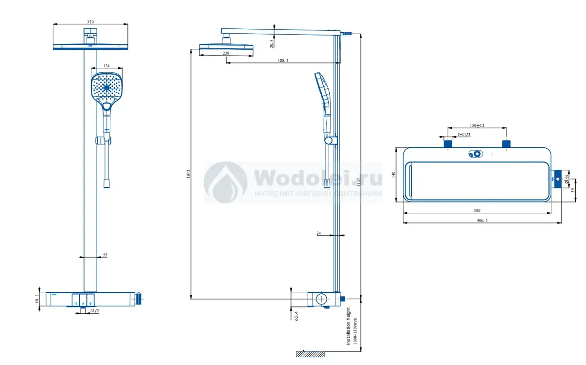 Душевая стойка Arrow AMG13GH872U1CP хром, с изливом и термостатом