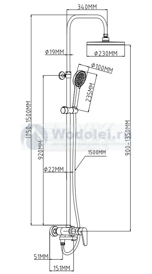 Габариты верхнего душа |