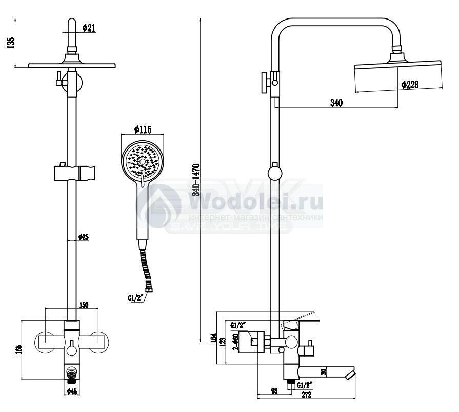 Душевая стойка Esko Orlando Black ST260OLB с изливом, черный