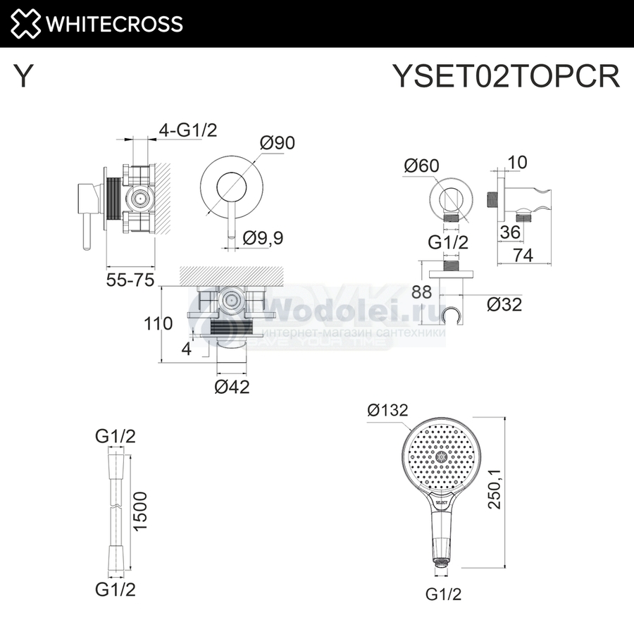 Встраиваемая душевая система Whitecross Y YSET02TOPCR без излива, хром