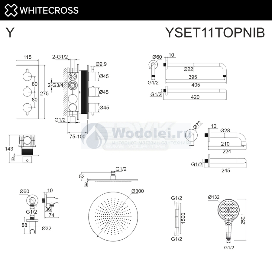 Встраиваемая душевая система Whitecross Y YSET11TOPNIB с термостатом и изливом, никель брашированный
