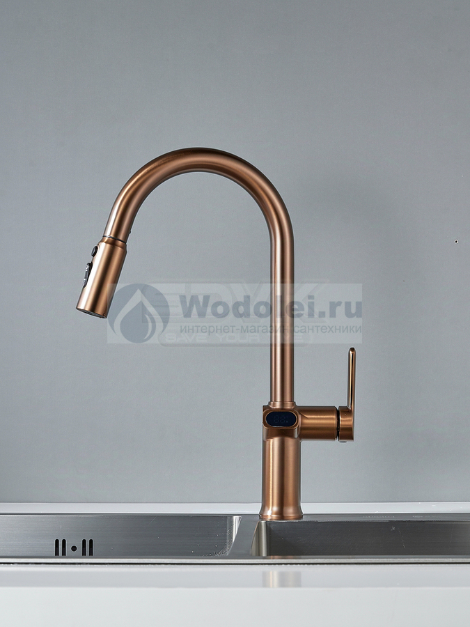 Cмеситель для кухни Knotlor Inspiration KN-100/RB с индикатором температуры, вытяжной излив, бронза