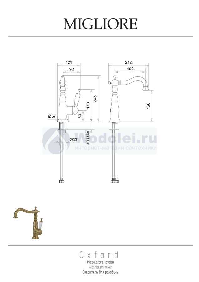 Купить смеситель для раковины Migliore Oxford 19118 тосканская бронза Италия в Москве в магазине Wodolei можно с доставкой и установкой. У нас установлена самая низкая цена: смеситель для раковины Migliore Oxford 19118 тосканская бронза стоит 29700 руб. Если нашли дешевле – просите скидку.