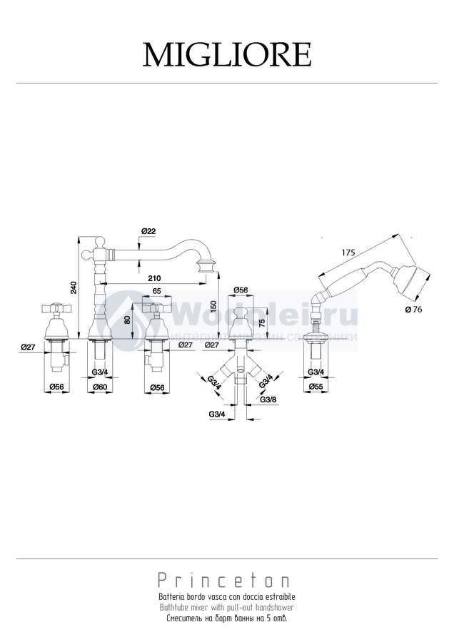 Купить смеситель для ванны Migliore Princeton 19345 бронза Италия в Москве в магазине Wodolei можно с доставкой и установкой. У нас установлена самая привлекательная цена: смеситель для ванны с душевой лейкой Migliore Princeton 19345 бронза стоит 81180 руб. Если нашли дешевле – дадим скидку.