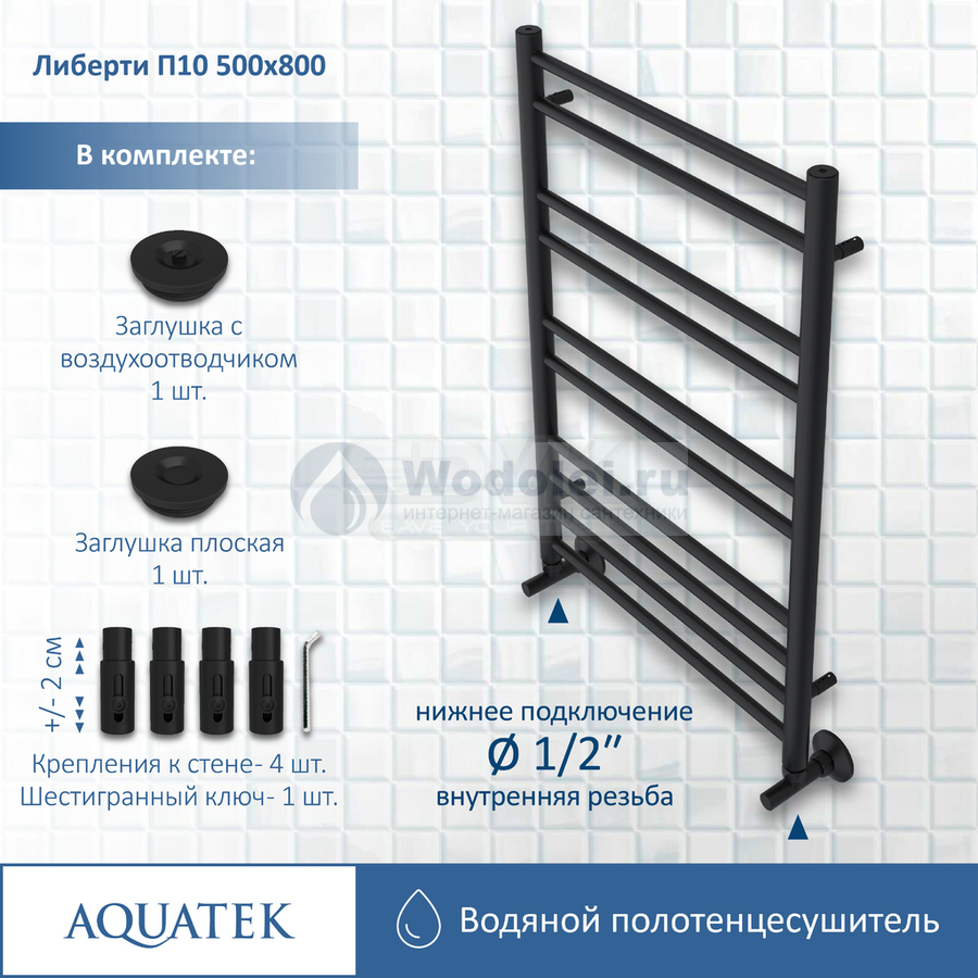 Купить водяной полотенцесушитель Акватек Россия Либерти 53x80 AQ RR1080BL черный муар материал: нержавеющая сталь в Москве в интернет-магазине Wodolei удобно с доставкой и установкой. У нас установлена самая привлекательная цена: полотенцесушитель водяной Акватек Либерти 53x80 AQ RR1080BL черный муар подключение нижнее стоит 13864 руб. Если нашли дешевле – предоставим скидку!