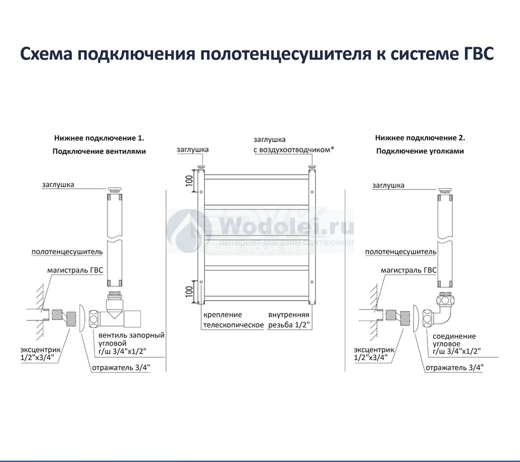 Фитинги для подключения водяных полотенцесушителей Акватек AQ 2020BL черный муар AQ 2020BL черный муар |